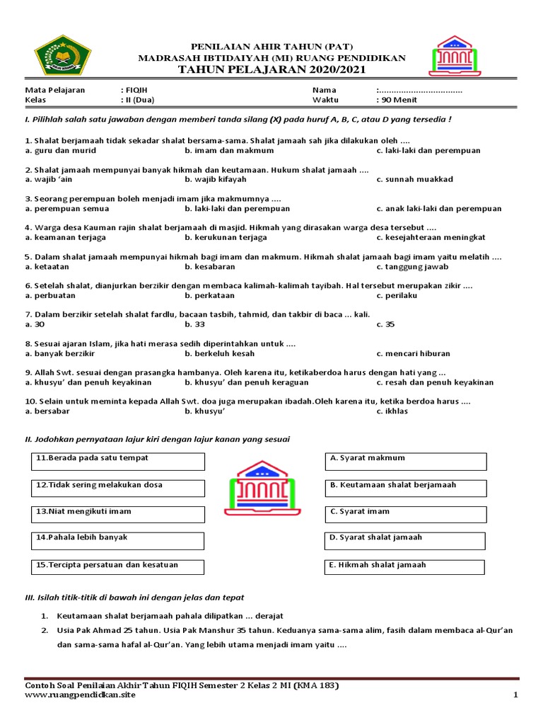 Pendidikan Fiqih di Madrasah Ibtidaiyah (MI) memegang peranan krusial dalam menanamkan pemahaman dasar agama Islam kepada anak-anak sejak usia dini. Kelas 2 MI merupakan jenjang penting di mana konsep-konsep Fiqih mulai diperkenalkan secara lebih sistematis. Penilaian Akhir Tahun (PAT) menjadi tolok ukur keberhasilan pembelajaran dan pemahaman siswa terhadap materi yang telah diajarkan selama satu tahun ajaran.